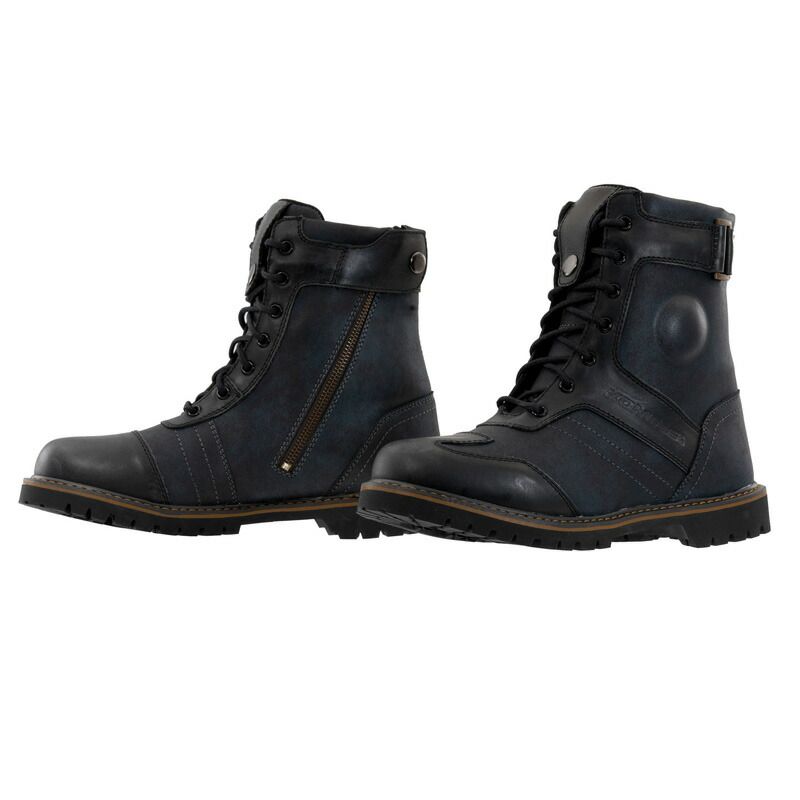 タフなルックスのライディングブーツ。丈夫でお手入れ簡単なマイクロファイバーをメインに使用し、くるぶしのプロテクターや牛革製のシフトパッチも装備。