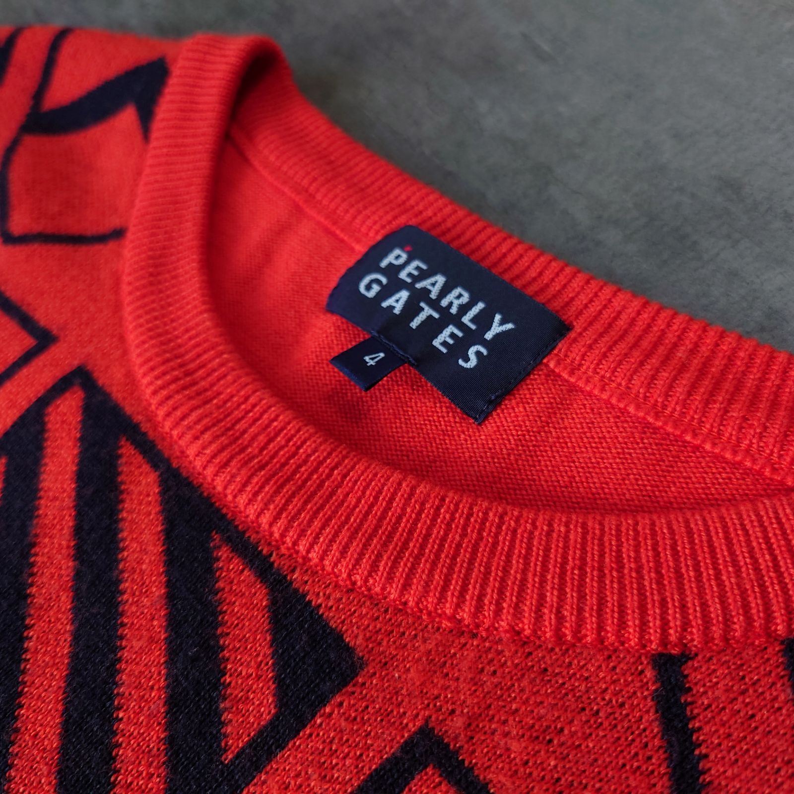 ◆pearly gates◆パーリーゲイツ◆PGG◆golf◆ゴルフ◆ゴルフウェア◆ゴルフニット◆ゴルフセーター◆ジャガードニット◆ジャガードロゴ◆ウール100%◆オレンジ◆マルチロゴ◆デカロゴ◆両面ロゴ◆スリーブロゴ◆メンズ◆ユニセックス◆