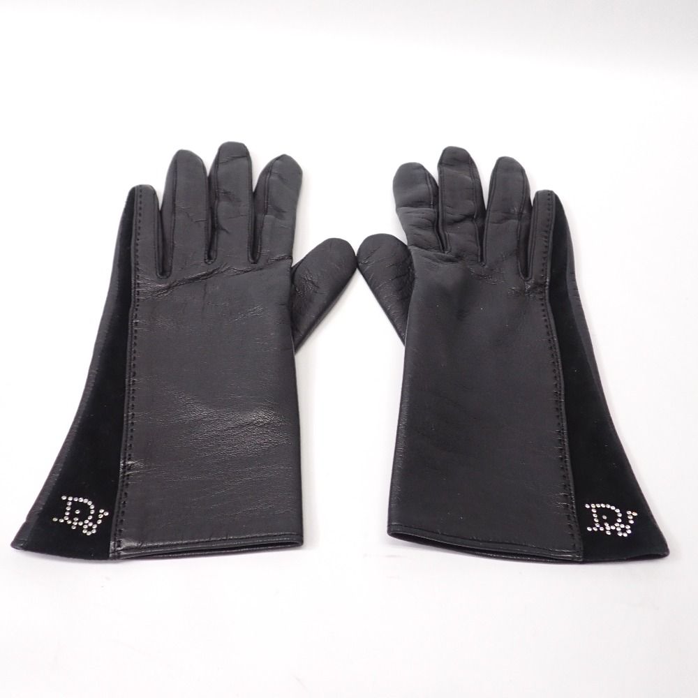 Ft 6328124 クリスチャンディオール 手袋 サイドスエード ラインストーン 黒 レディース Christian Dior