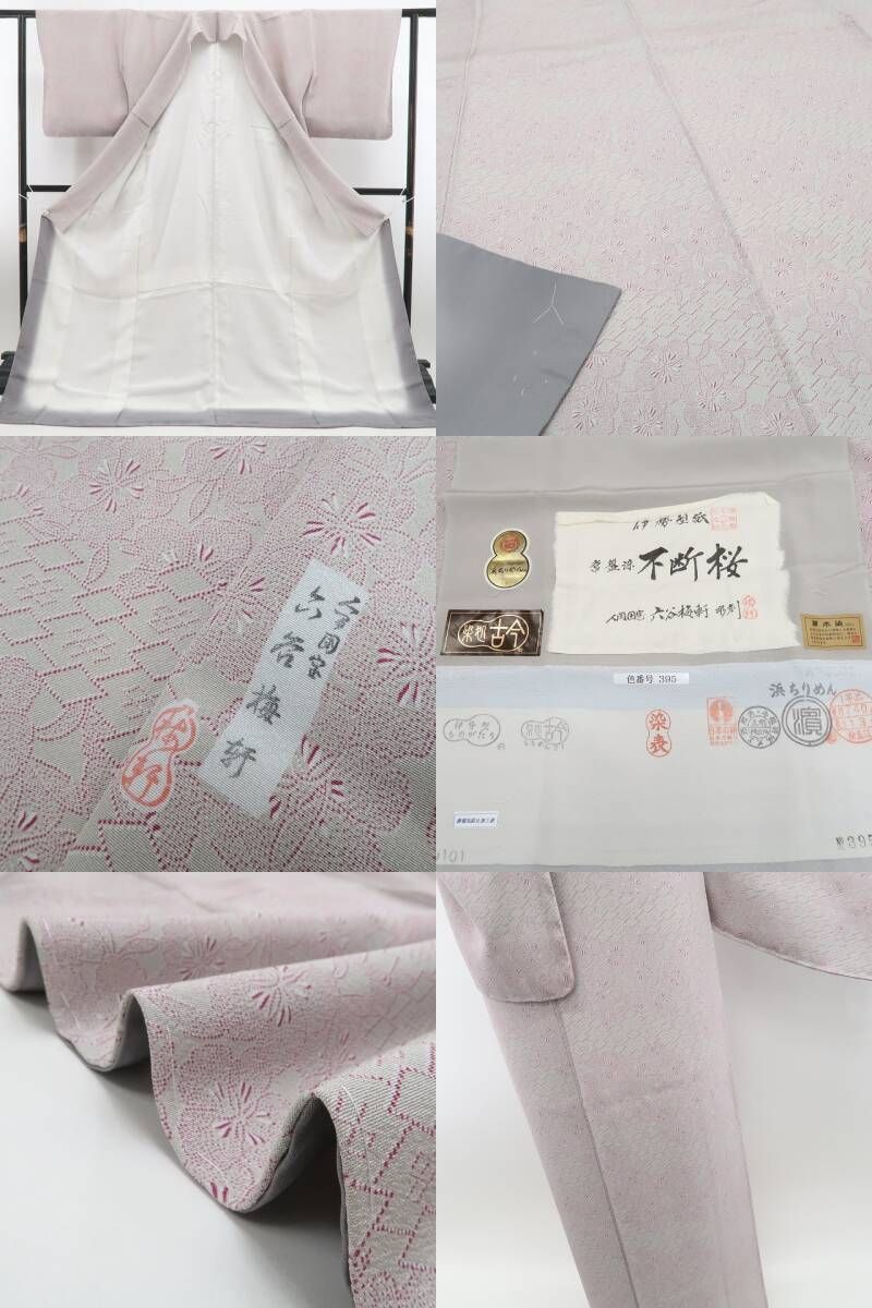 ❁tomihisa❁ 人間国宝 六谷梅軒 落款 桜 草木染 着物 正絹 仕付け糸付 伊勢型紙”匠が刻む微細の美で気品を纏う”江戸小紋 7063