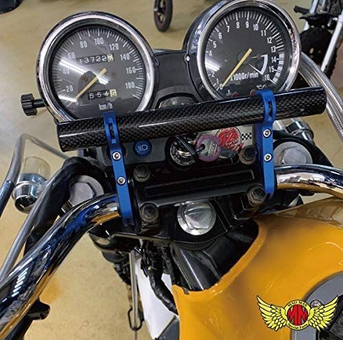 バイク用 軽量カーボン製 マルチバーロング アルミクランプ ブラック。