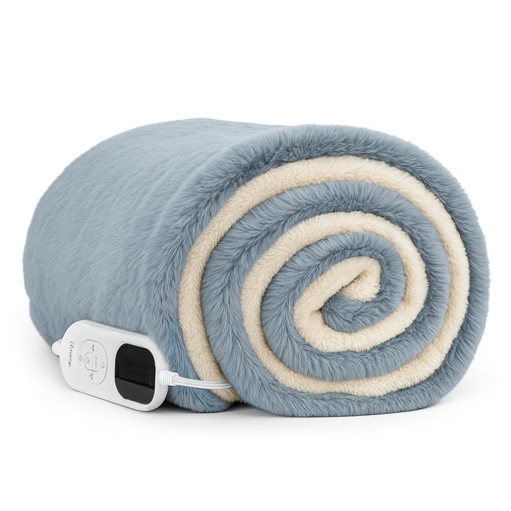 電気毛布 ひざ掛け 電気ブランケット 滑らか触感 切タイマー 洗える (洗濯機&手洗い対応) 5段階温度 省エネ 掛け敷き両用 ラビットファー ポリエステル ふわふわ 180*140cm あったかブランケット PSE認証済 ダニ退治 DRMTYGG002 (ブルー)