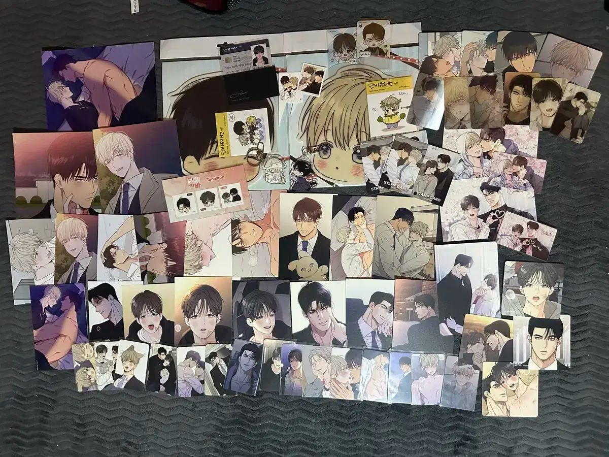 ポストカード、ステッカー、トレカ、アクリル キーホルダーなど、多様に構成されています。