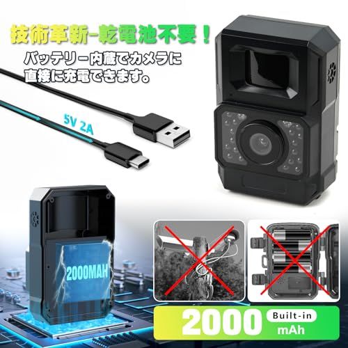 Hapimp【充電式&WIFI対応】 防犯カメラ トレイルカメラ ソーラーパネル 6000万画素 1080P 小型 屋外 野外 乾電池不要 ソーラーパネル付 IP66防水防塵 赤外線LED 監視カメラ 暗視 動体検知 人感センサー 夜間対応 自動上書き録画 2