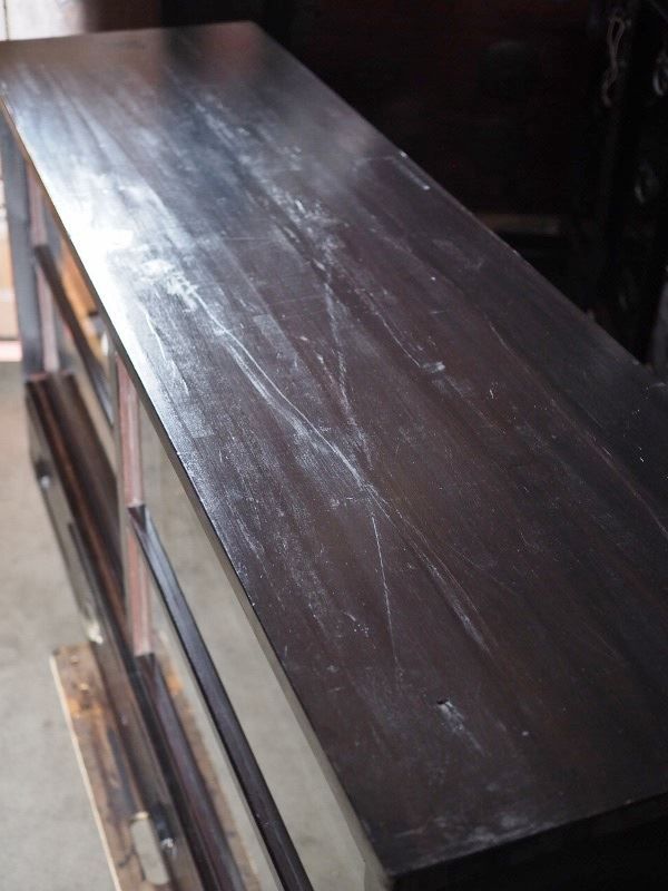 Antique wide glass case, painted furniture, heavy, Taisho era. This large glass case was painted later, dating back 100 years. The antique glass adds a nice touch. The metal fittings are different. Please check the images and video for signs of deterioration. (◎ [Note] ① Items over K size cannot be delivered via "household goods delivery" on Tuesdays. ② Items over 220 and H size cannot be delivered to some remote islands.) If you have any questions, please contact us by phone, LINE, email, or Instagram message. We will answer honestly.(幅)1790mm×(奥)520mm×(高)870mm