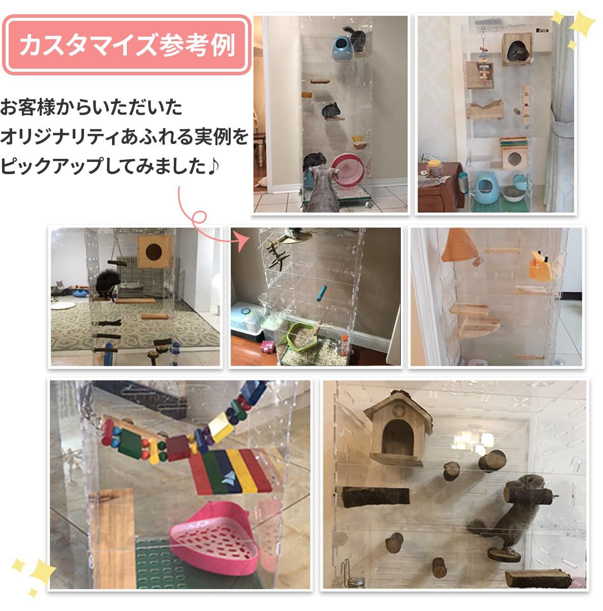 フクロモモンガ愛好者のために設計されたアクリルケース。あなたの可愛いペットの活発な動きや愛らしいしぐさを、透明なアクリル素材で存分に楽しんでください。