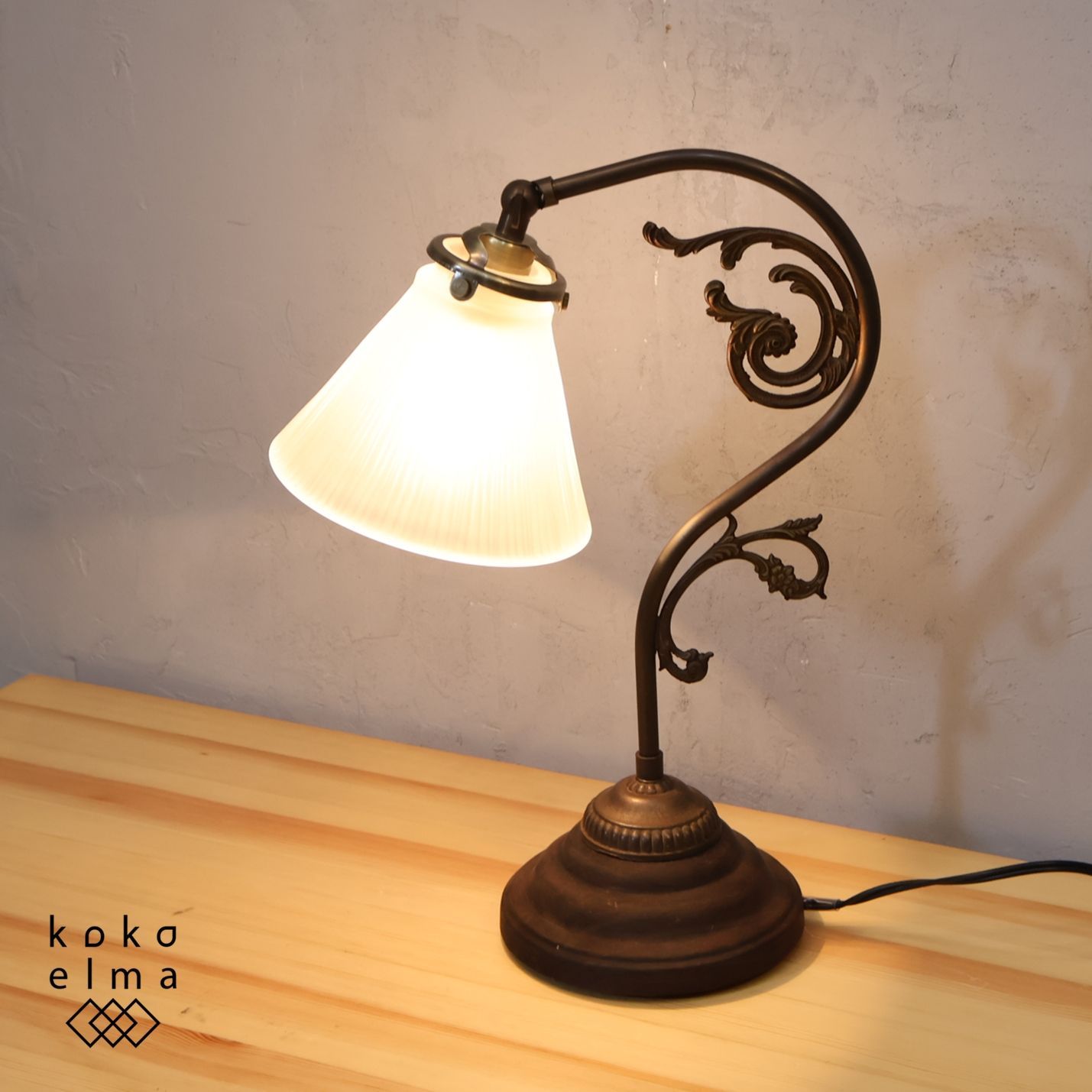ヨーロッパアンティークのようなガラスシェードと植物をモチーフにした装飾が