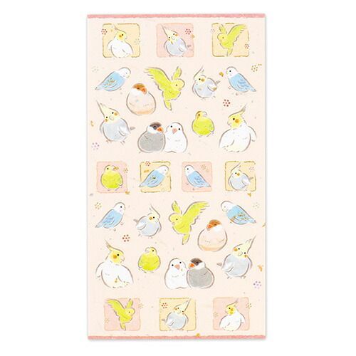 優しい筆のタッチと愛くるしい表情を見せる小鳥たちがかわいらしいデザインです。種類はセキセイインコ・オカメインコ・ノーマル文鳥・白文鳥・シナモン文鳥です。風合いのある和紙を使用しており特有のあたたかみを感じることができます。キラリと光る金箔押し加工がアクセントになっています。【検索ハッシュタグ】#シール#ステッカー#金箔#箔押し#ふくろう#フクロウ#梟#とり#トリ#鳥#アニマル#動物#エヌビー#NB#bird#バード#トリ
