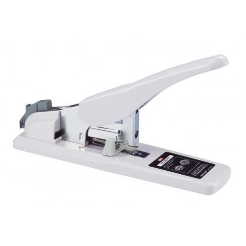 ●外寸:幅85×奥325×高185mm●綴じ枚数:約30~110枚●綴じ奥行:最大60mm●針装てん数:100本●重量:1.43kg●綴じ厚:最大約9mm●専用使用針:1210FA-H,1213FA-H針●材質:本体プラスチック部=再生ABS●リムーバ,奥行ゲージ付