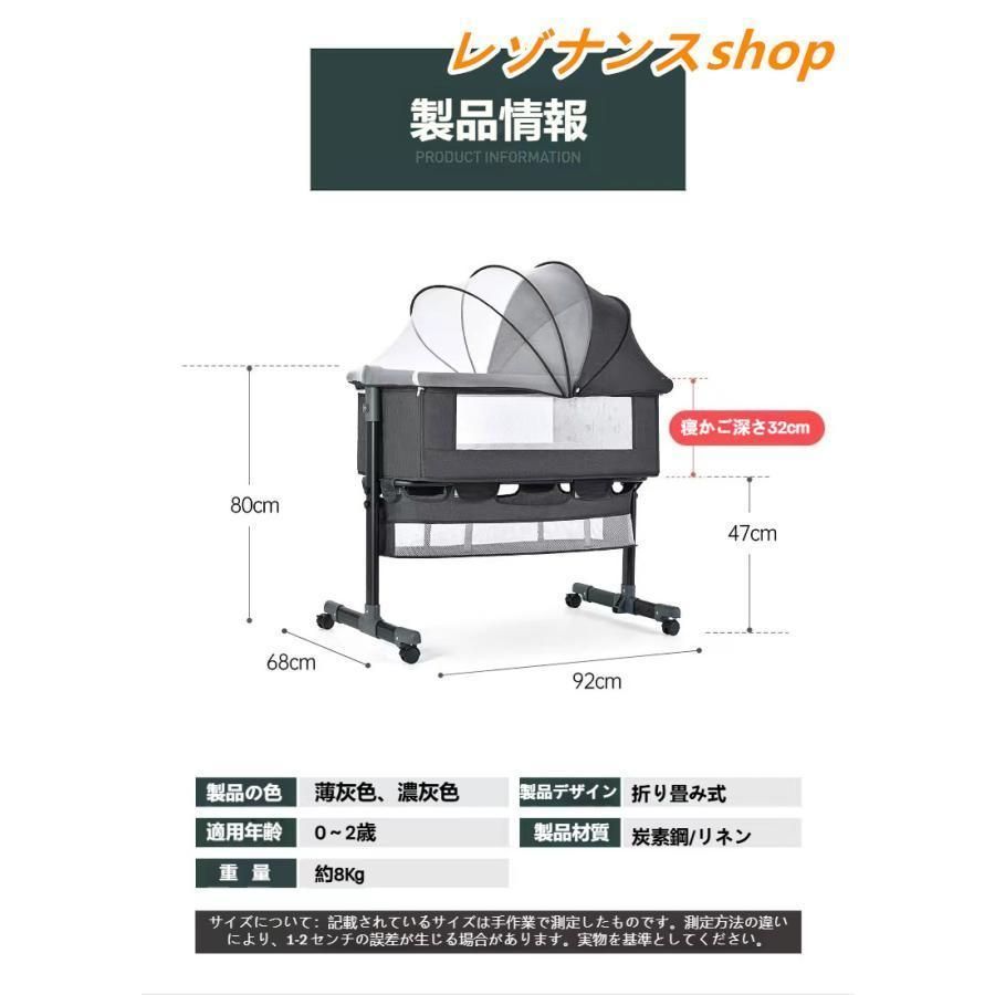 ベビーベッド 多機能添い寝 ベビーサークル 持ち運び 折りたたみ 新生児 0?2歳 ゆりかご 蚊帳付き マットレス 出産祝い 赤ちゃん ベビー用寝具 取り外し可<br><br>大人ベッドの高さ同じに調節できるし、固定ベルトつき、各高度の大人ベッドにくっつけてご利用可能です。下に収納かごつき、布団とおもちゃなどを入れて簡単に収納できます。