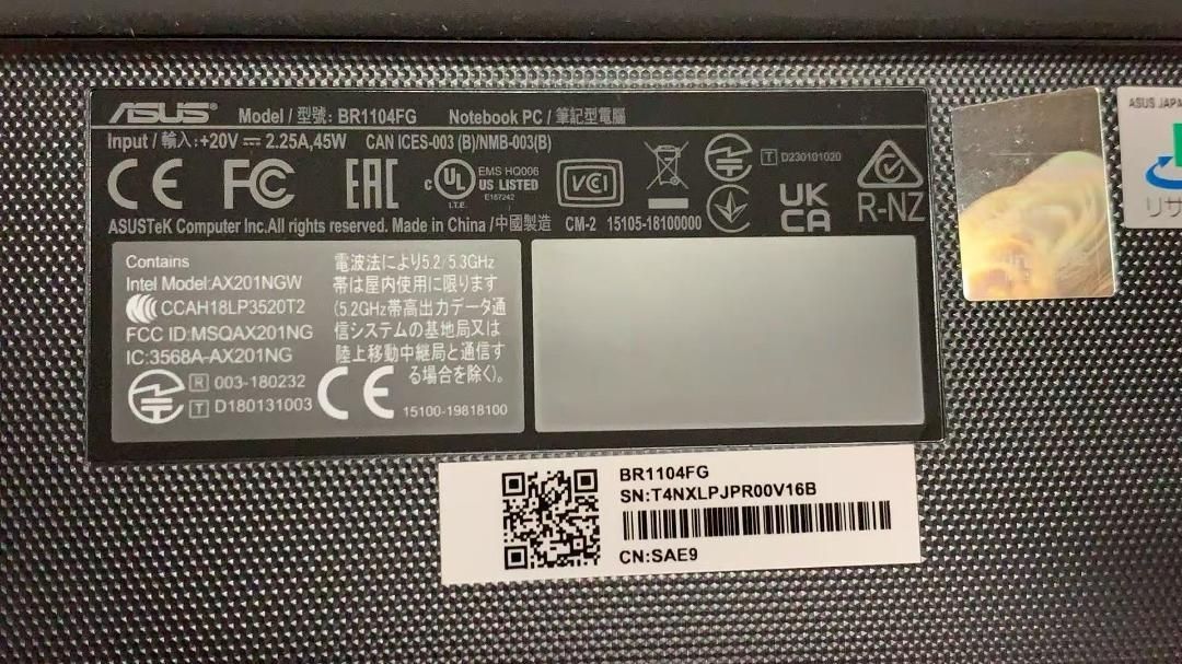 - モデル名: ASUS BR1104FGA-NS0010XA