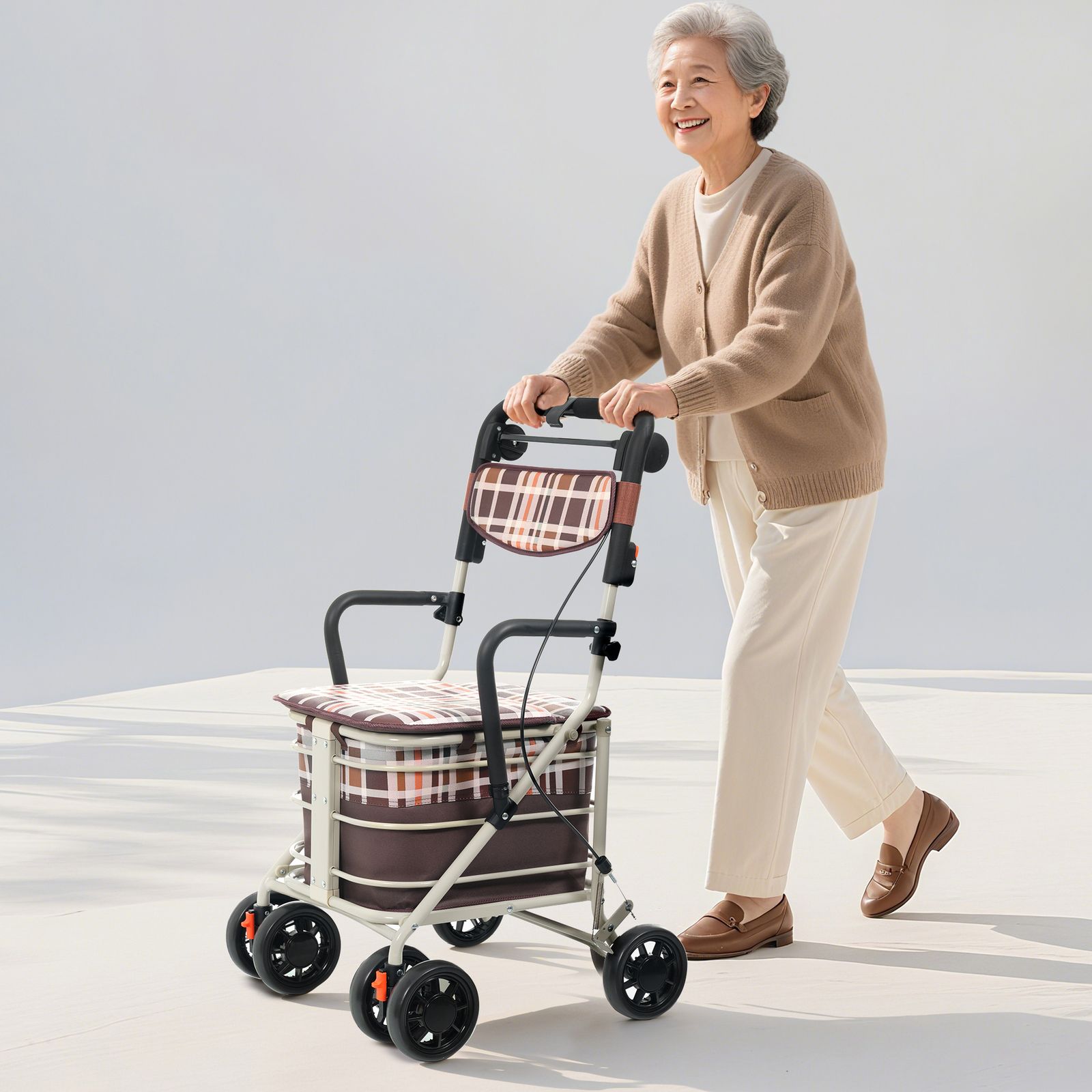 ◎01毎日のお買い物やお散歩に、ちょっとした安心をプラス。疲れたときは座ってひと休み、飲み物や食料品などもしっかり収納できます。折りたためばコンパクトになり、持ち運びや収納もスムーズ。毎日の「買い物・散歩・ひと休み」を、この一台でやさしくサポートします。