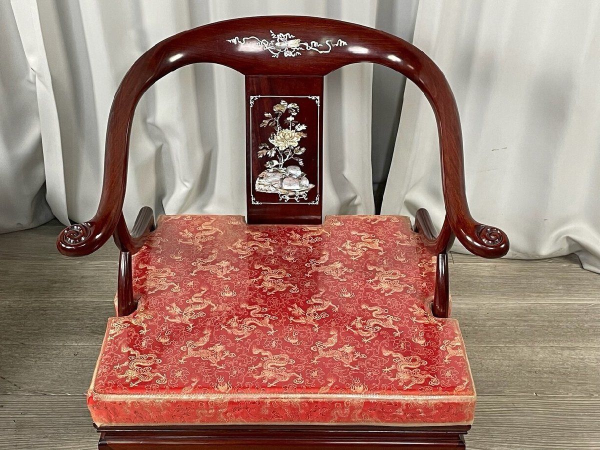 GT 97 唐木家具 花梨材 総無垢 螺鈿細工 アーム チェア ダイニング 2脚セット 1人掛け ソファ 神奈川県秦野市 22