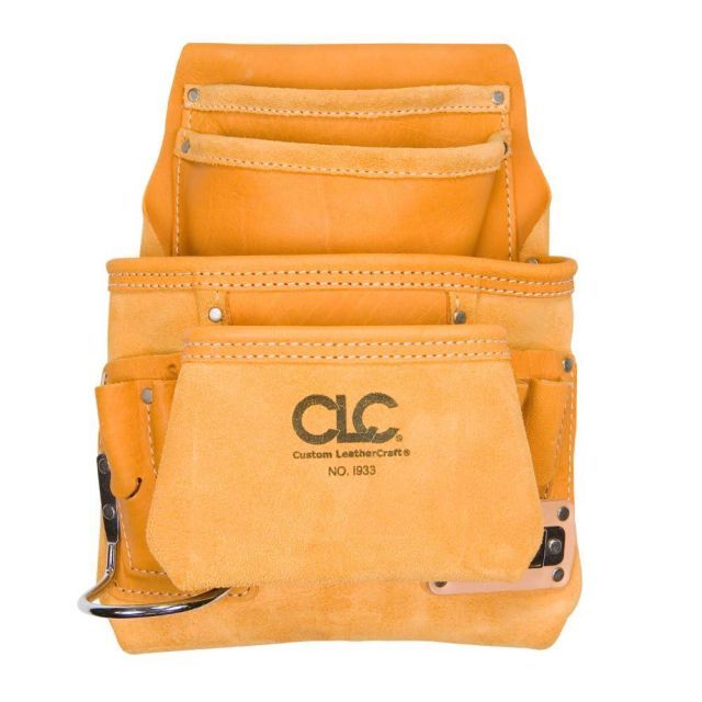 ●10個のポケット(大2、中2、小6)は収納力抜群。小はペン、プライヤーに最適。●金属製メジャー用クリップ、金属製ハンマーホルダー付。●負荷のかかる部分はリベットにより強化されています。●7cmまでのベルト幅に対応します。