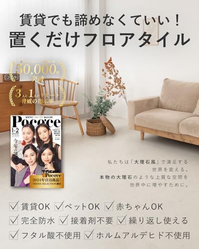 【置くだけで設置できるフロアタイル】 接着剤を使わず、床にそのまま並べて設置できる置くだけタイプのフロアタイルです。既存の床の上から施工でき、DIY初心者の方でも扱いやすい仕様。賃貸物件でも導入しやすく、お部屋の模様替えやリフォームの幅が広がります。