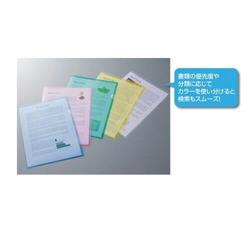 ●厚さ/約0.2mm●青・緑・ピンク・黄・透明各120枚●再生PP●A4●サイズ/310×220mm●色/5色アソート
