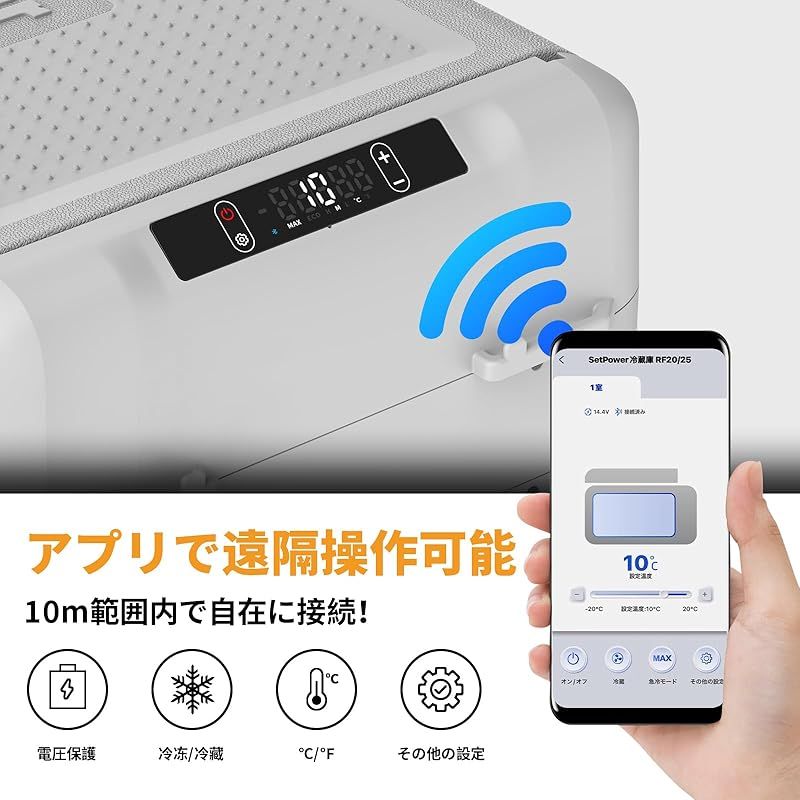 Setpower ポータブル冷蔵庫 小型 20 L 停電時50時間持続保冷 車載冷蔵庫 28 W省エネ 15 mins 急速冷凍 -20℃~20℃車載家庭両用 携帯冷凍庫 アプリ遠隔操作 35 db低騒音 45°耐震設計 車中泊 キャンプ 旅行 釣り 1