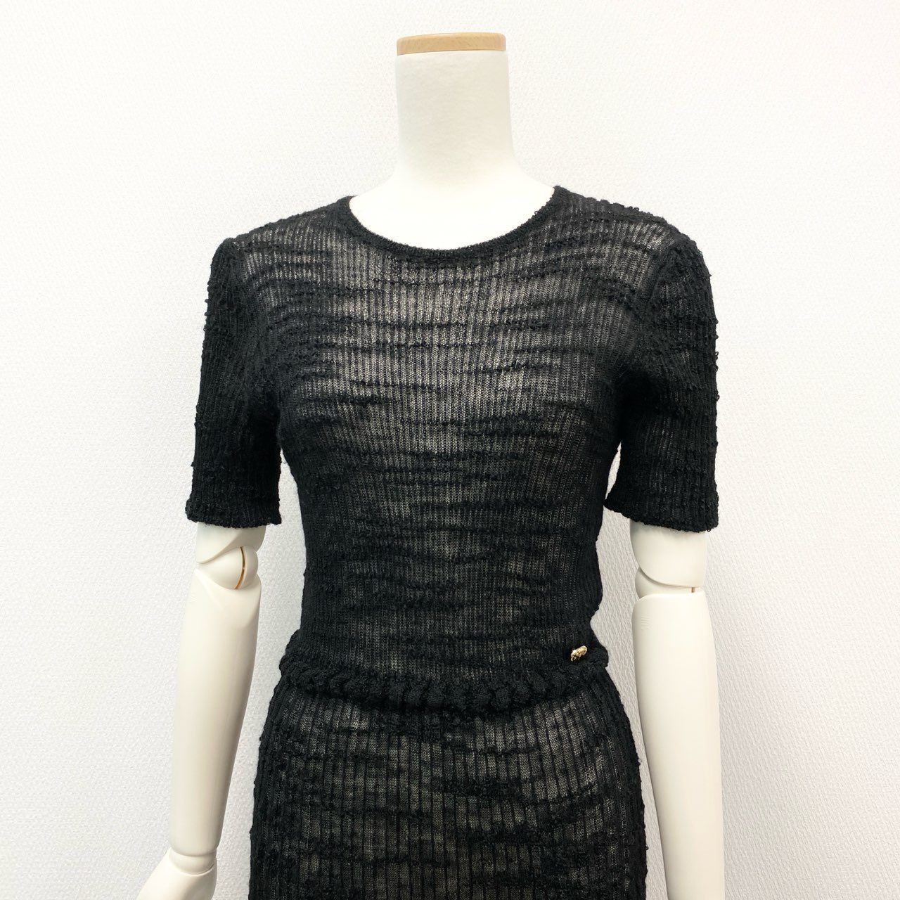 34 i 18 CHANEL シャネル アルパカ メッシュニット ドレス ワンピース 38 ブラック ALPACA KNIT DRESS ゴールドチャームt r