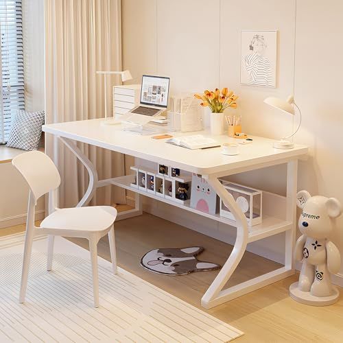 パソコンデスク ゲーミングテーブル シンプルワークデスク PCデスク 棚付きデスク コンパクト 省スペース 在宅勤務 テレワークデスク 頑丈で組立簡単 おしゃれ 大人 子供用 収納 C字フレーム ケーブルホール無し 幅80 cm 奥行5 fed 17 cd 3