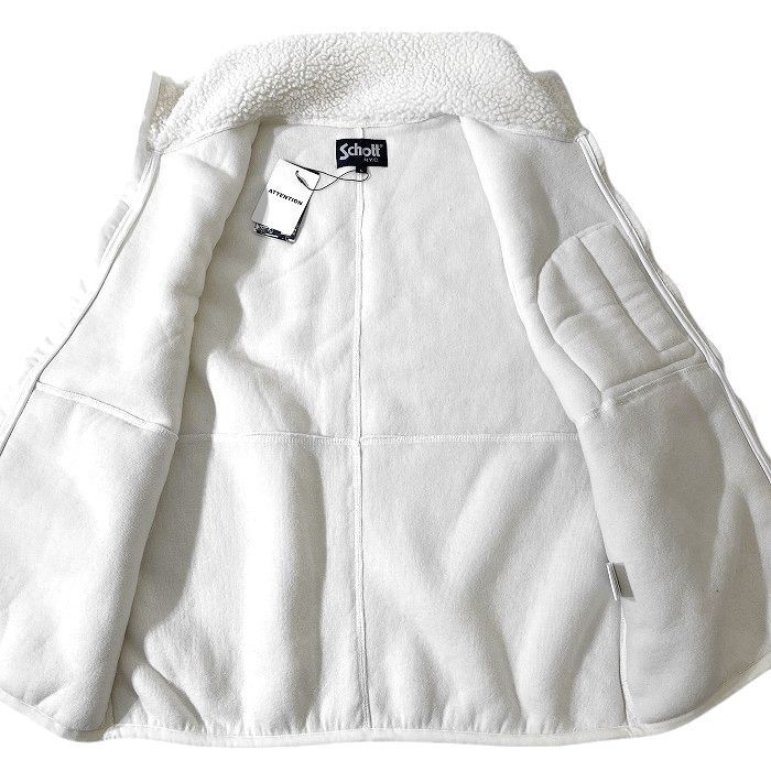 Schott N.Y.C. ショット LEATHER POCKET PILE VEST レザーポケット ワンスターリベット スタンド ボアパイル ボアフリース ベスト 3112057 ホワイト 060 41217 w 08