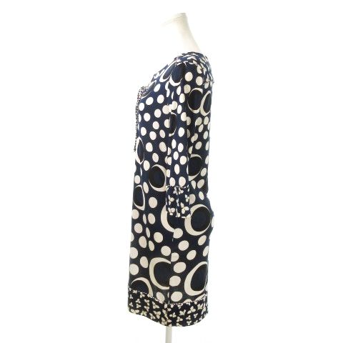 ダイアンフォンファステンバーグ DIANE von シルクワンピース ミニ キーネック レースアップ 七分袖 絹 ドット 花柄 総柄 4 S 紺 ネイビー MN 1 GY 19