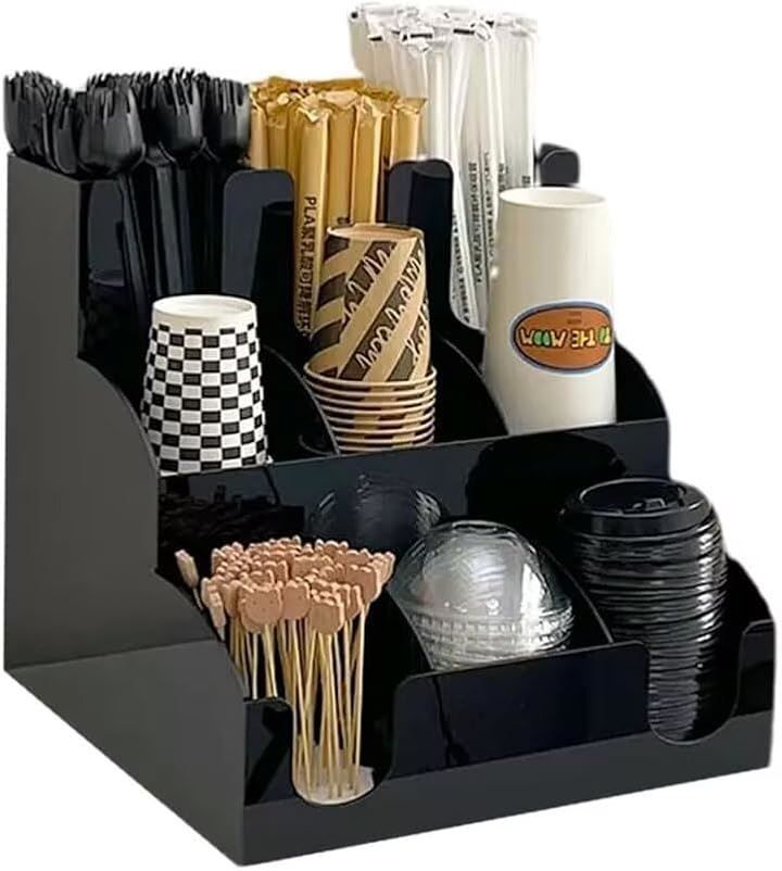 ストロー、コーヒーカプセル、ナ イフ/フォーク/スプーン、ティッシュなども収納でき、多機能で使いやすいです。