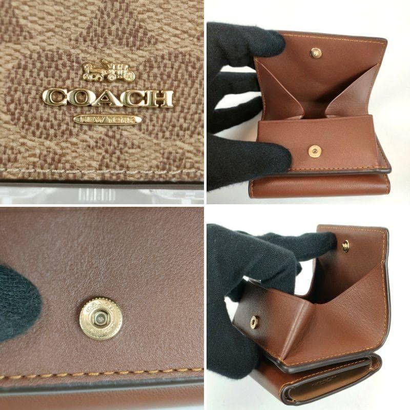 COACH コーチ シグネチャー 三つ折り財布 ブラウン コンパクトウォレット ミニ財布 レディース