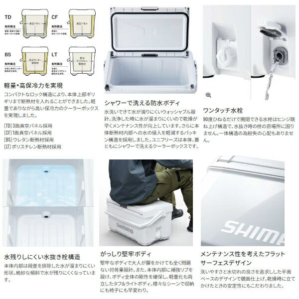 ◆魚を持ち帰ることを考えた新定番の釣り用クーラーボックスです。20Lクラスでありながら内寸45cmを確保、グッドサイズの魚を折り曲げずに持ち帰ることができます。UNISHIELDを採用することで、密閉性を高め移動時の水漏れや冷気漏れを軽減。両面開きの蓋は横に物があってもアクセス可能。ワンタッチ跳ね上げ構造の水栓は紛失の心配がありません。洗った時の水残りのしにくさなど、釣り用クーラーボックスとしてのメンテナンス性も向上しました。船のエサ釣り、堤防、近海のインショアボートなど幅広く活躍します。優れたスペック、使い勝手とコストパフォーマンスの良さをこのボックスに詰め込みました。