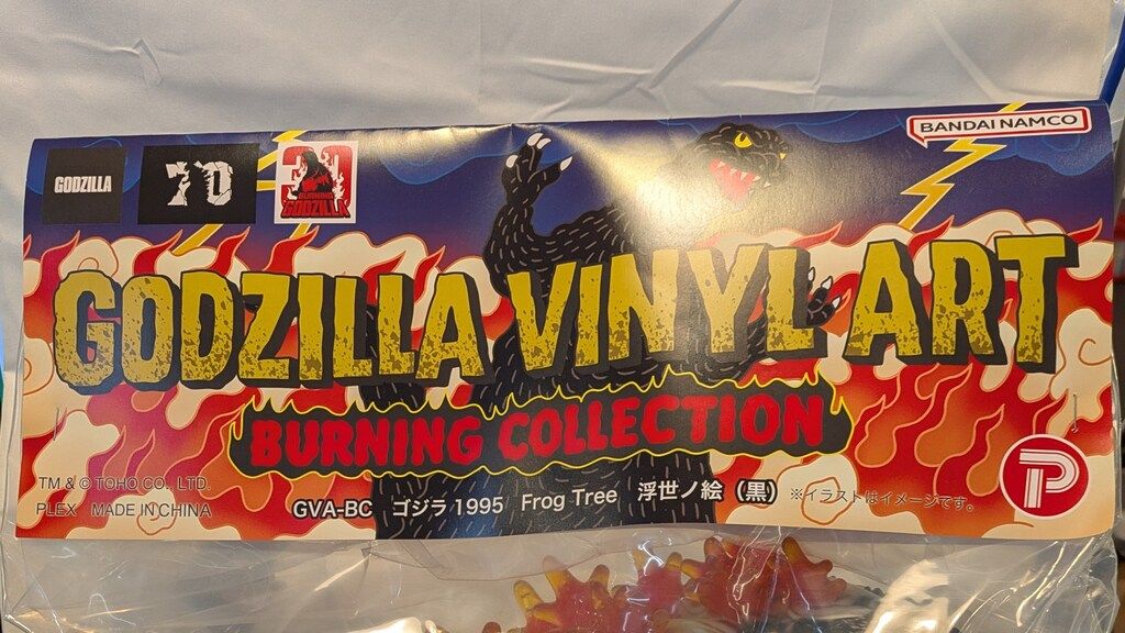 T-BASE VINYL ART BURNING Frog Tree ゴジラ1995 浮世絵 黒