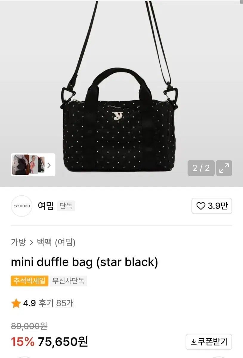 yeomim ミニ ダッフルバッグ