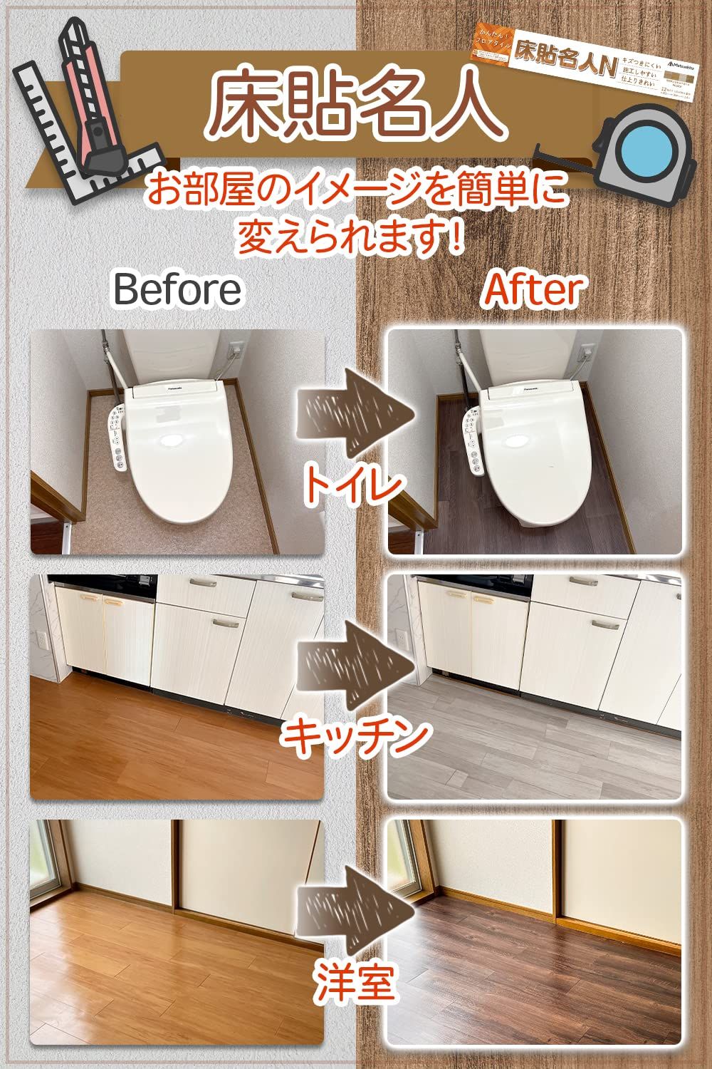 【プロの監修で高品質な仕上がりなフローリングシート】 DIYのプロが監修し、プロの目線で商品開発。施工と仕上がりにプロの品質のフローリングシートになります。