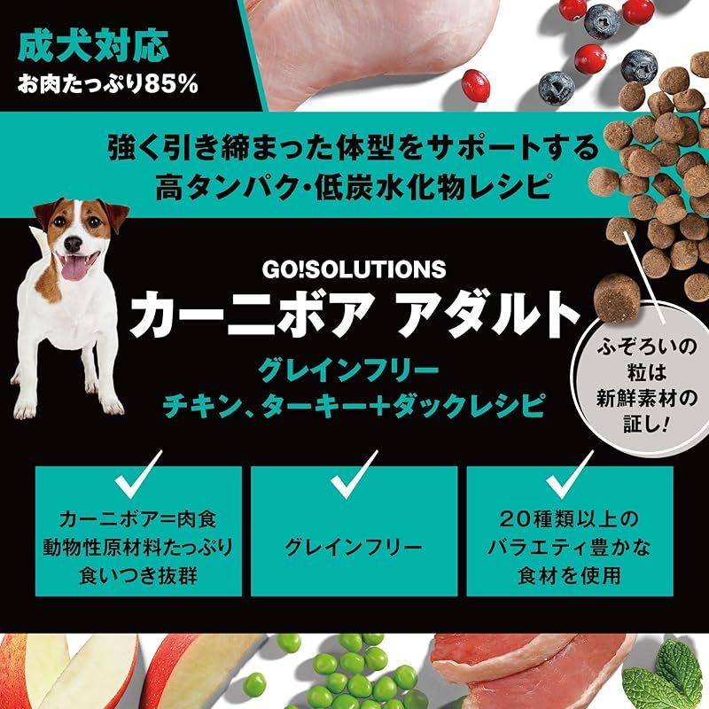 お肉たっぷり GO! カーニボア ドッグフード 2 3 kg グレインフリー 高タンパク 低糖質 成犬 全犬種 チキンターキー&ダック ゴーソリューションズ 1