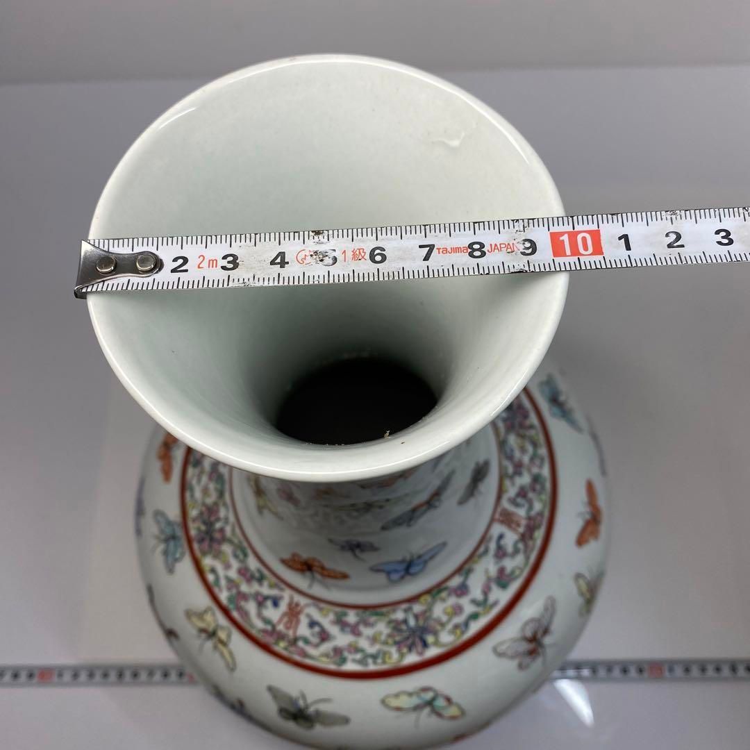 中国美術 粉彩 蝶図 花瓶 タサオ 高さ41.5㎝ 東な6-0602