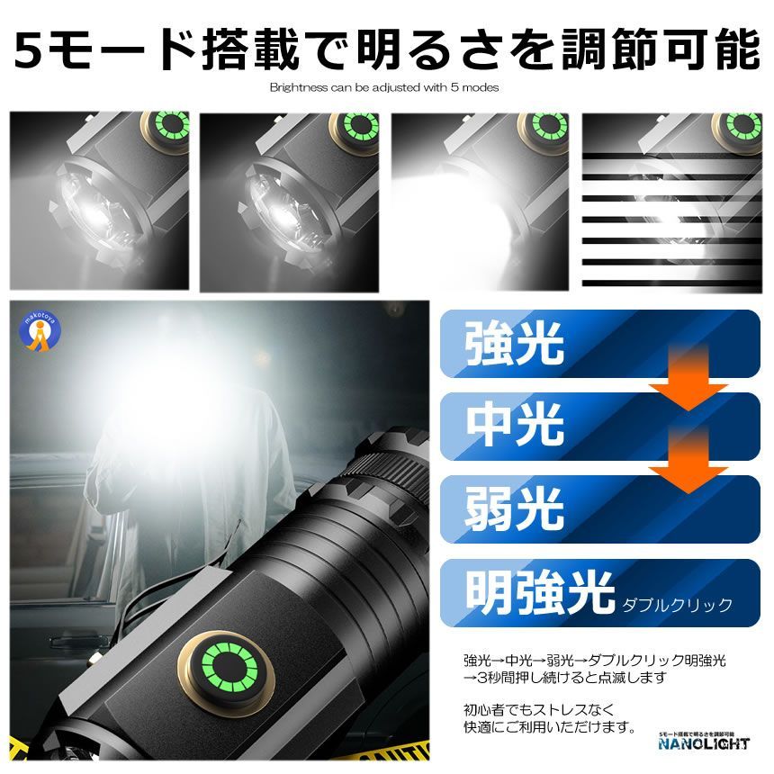 セット 懐中電灯 1000 LM LED 強力 小型 18350電池 磁石 5つのモード 照明 キャンプ ハンディライト 夜釣り 登山 防水 ナノライト NONOLIGHT ゆうパケE