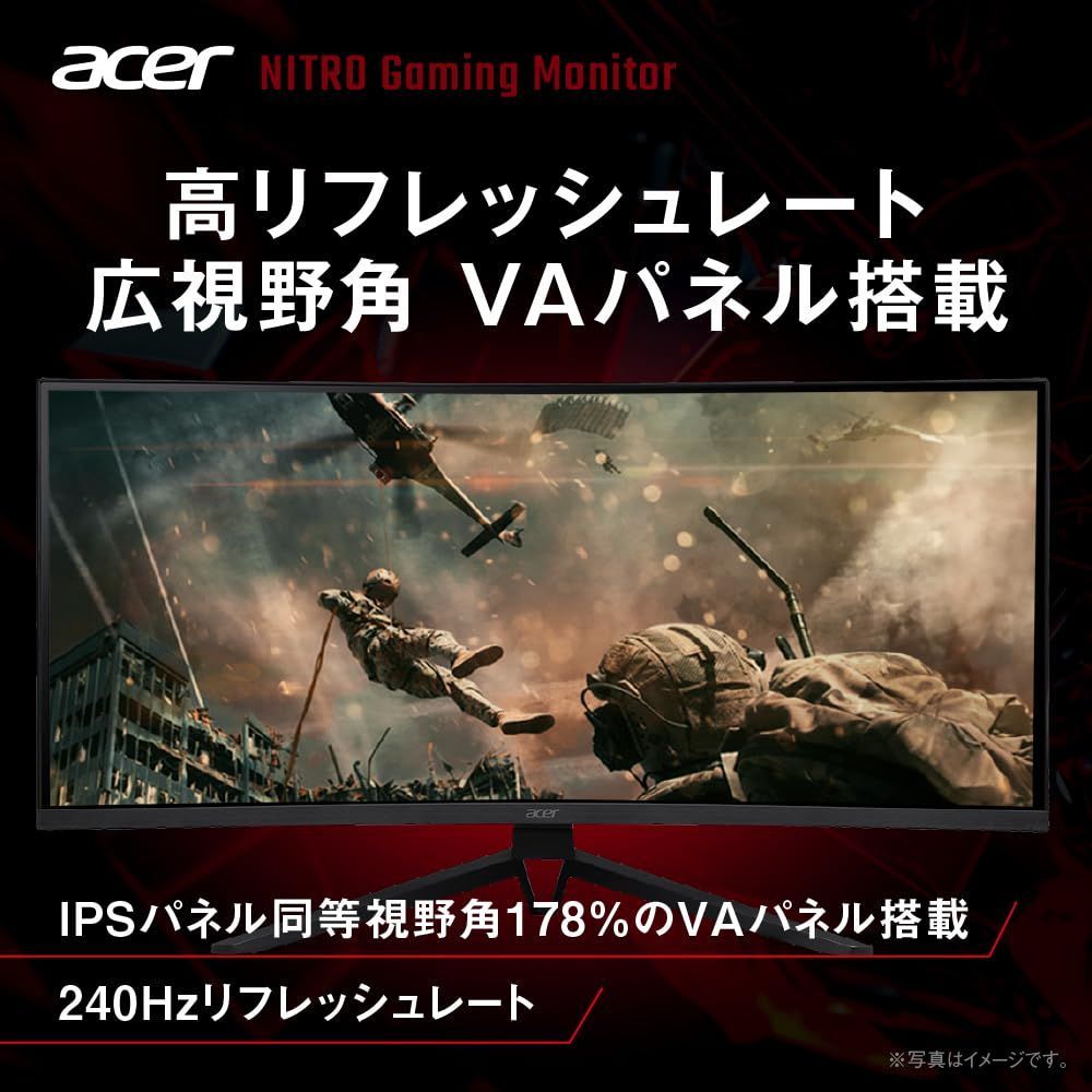 Acer Nitro 湾曲 ゲーミングモニター 34インチ UWQHD (3440 x 1440) VA 非光沢 240Hz 0.5ms Adobe RGB 90% AdaptiveSync HDR10 HDMI 2.1 DisplayPort 1.4 ヘッドホン端子 ED343CURXbmiippx
