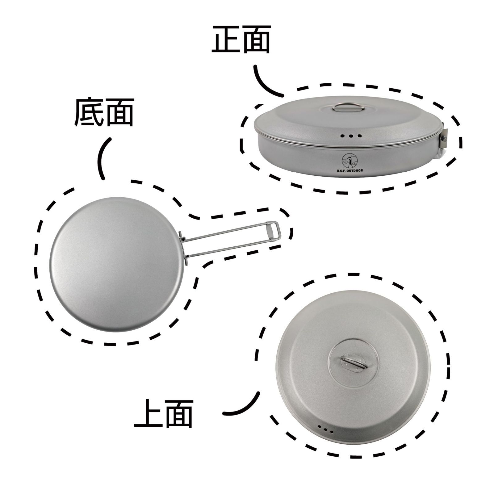 商品 チタン製平型フライパン L 蓋付き OUTDOOR 1100 ml A.S.F. Φ20.7