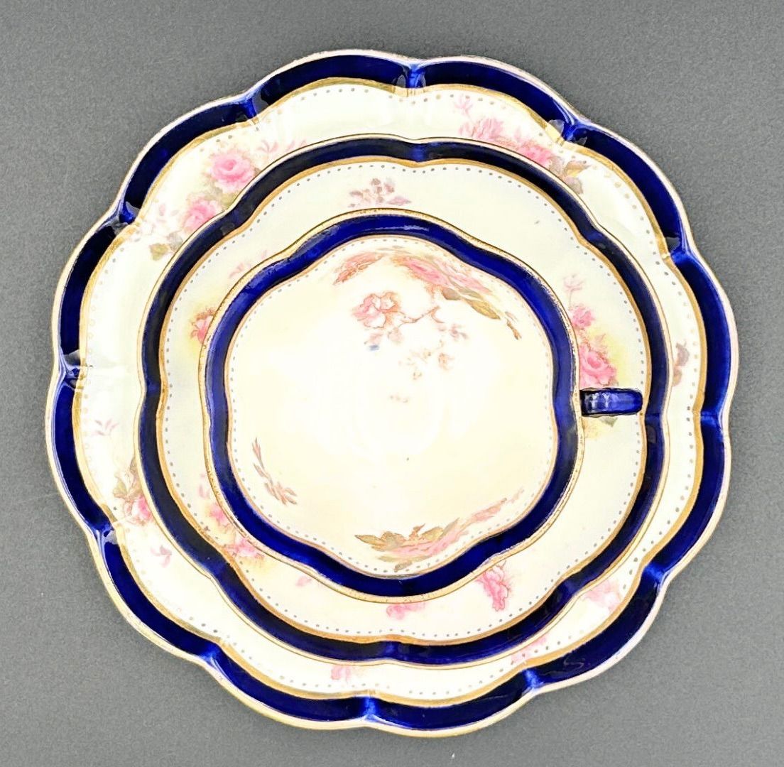 George Jones - Sons ジョージ ジョーンズ トリオ アンティーク 英国製 コバルト金彩 薔薇文 波打つ縁 優美なデザイン 1900年代初期頃 F 031