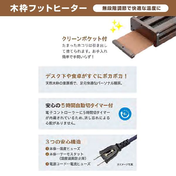 天然木枠の重厚感で、足元快適なパーソナル暖房。