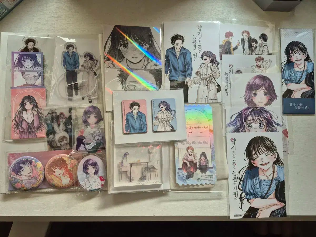 宮崎ななこ 漫画、香る花は凛と咲く 書店特典 まとめ 出品します。 アクリル スタンド、ポストカード、しおり、缶バッジ など多様な特典 グッズが 含む。 未開封 新品で、opp 包装 そのまま 収納 中です。