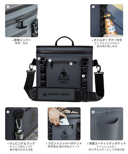 OneTigris FROZIK キャンプ クーラーボックス 72時間保冷 14リットル クーラーバッグ 軽量 水漏れ防止 3つキャリー方 手入れ簡単 ピクニック 釣りなどに適用 f 1 eff 304