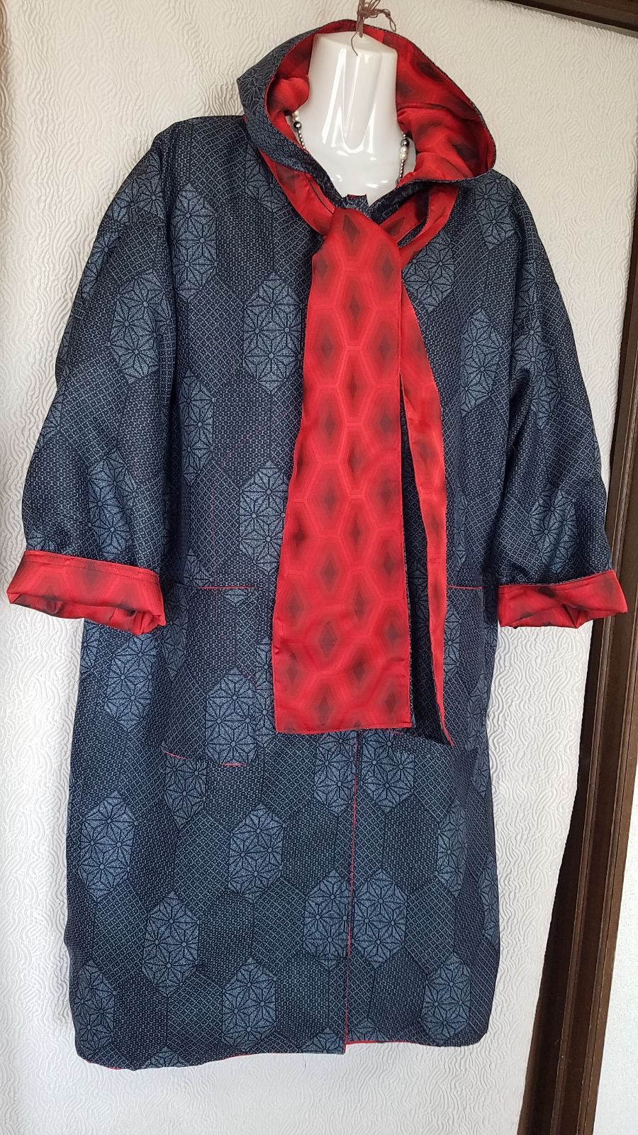 大島紬の着物と雨コートのリメイクのリバーシブルのコート