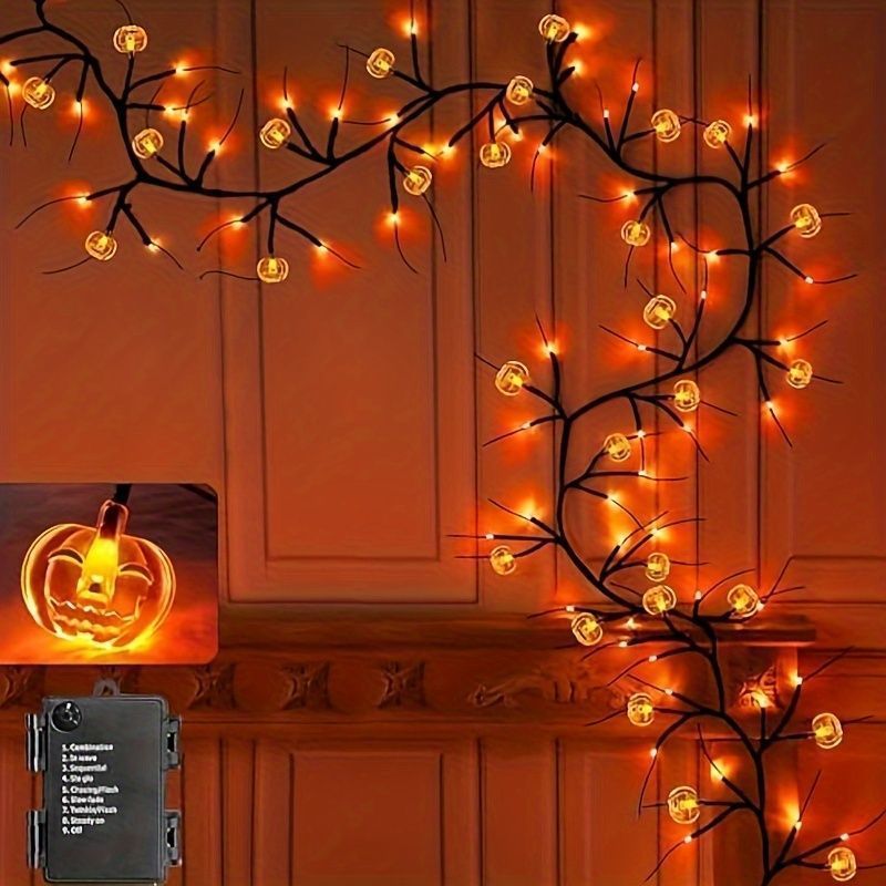 ガーデン ハロウィーンライト パンプキン インテリア 屋外 飾り イルミネーション 庭 置物 子供 こども 撮影背景 装飾 背景 つる ライト 18 オレンジ LED ブランチ ホーム デコール 電池式 スイッチ コントロール おしゃれ