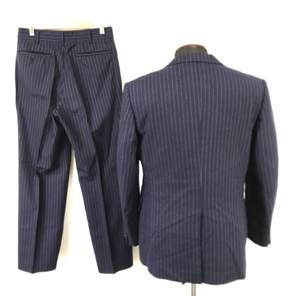 高島屋 Takashimaya セットアップ 3ピーススーツ メンズS-M程度 紺 navyストライプ 上下 ベスト three-piece suit Made in Japan cBH 885