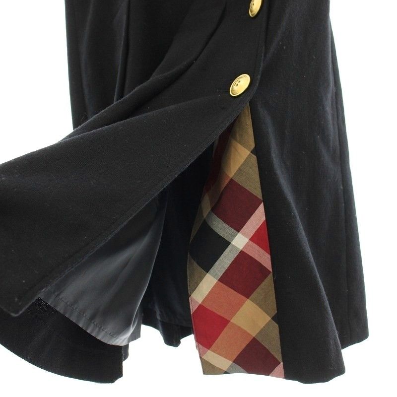 ブルーレーベルクレストブリッジ BLUE LABEL ラップスカート ウール混 ひざ丈 金ボタン 36 黒 ブラック 55 S 36-238-09 G