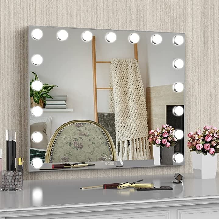 goteud 女優ミラー LED化粧鏡 壁掛け 卓上両用 三色照明モード&無段階明るさ調節 の高輝度電球が搭載され 61 cmx 53 cm 銀 大きい