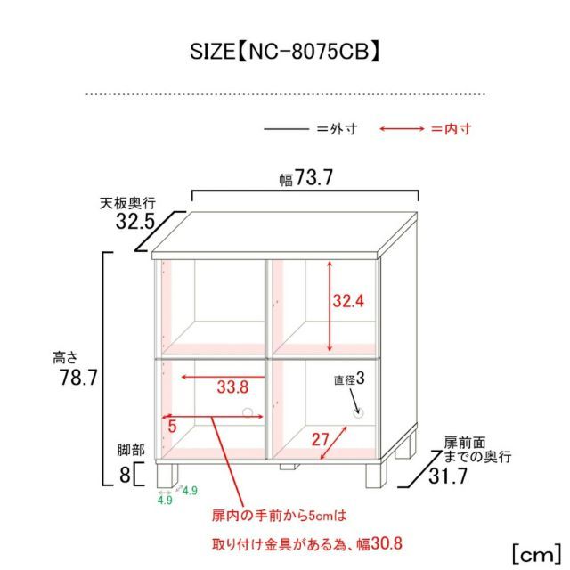 キャビネット 木製 2列 2段 扉付き収納 リビング 隠す収納 シンプル おしゃれ 配線コード穴 家電収納 プッシュ式扉 取っ手なし 背板固定 NC-8075 CB