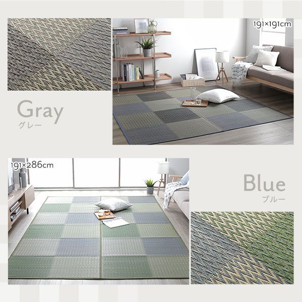 い草 花ござ ラグ マット 〔 2畳 格子柄 市松柄 グレー 本間2畳 約 裏貼りなし 〕 抗菌 防臭 調湿
