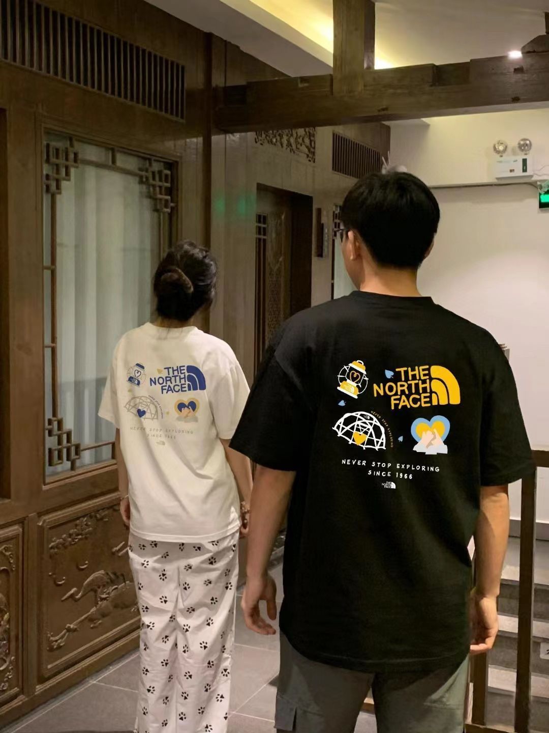 こちらは TNF とのコラボレーション T シャツです。専門店と同じタイミングで発売されており、前後にコラボレーションロゴが施されており、カップルで一緒に着用できる男女兼用のプリント T シャツです。