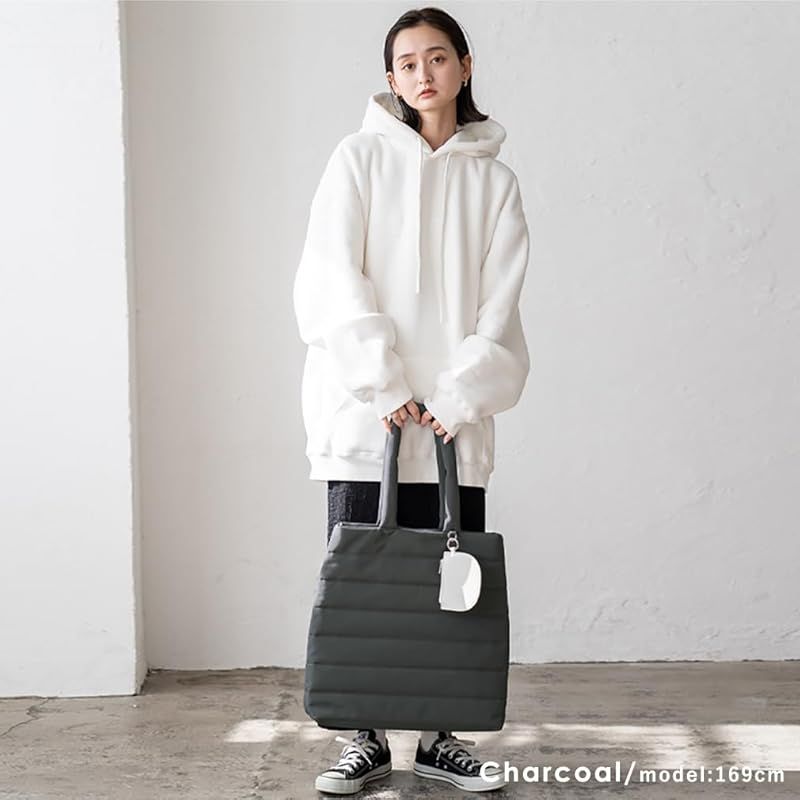 ミニポーチ付きで嬉しい♪ 撥水ナイロンのキルティング縦型トートバッグ。 中綿入りのキルティング生地に撥水加工が施されており、急な雨にも安心。 軽量かつしっかりした作りで、デイリー使いにぴったりです。 肩に優しい長めのハンドルは、厚手のアウターを着ていてもサッと掛けやすく、 中綿入りのハンドルで肩当たりも優しいので、長時間持ち歩いても快適です。 さらに、取り外し可能なミニポーチが付属しており、 リップやカギなどの小物を分けて収納できるのでとても便利。 A4サイズが縦にも横にもすっぽりと収まる大きさで、見た目以上に収納力抜群。 普段使いはもちろん、通勤・通学・ちょっとした旅行などにも最適です。