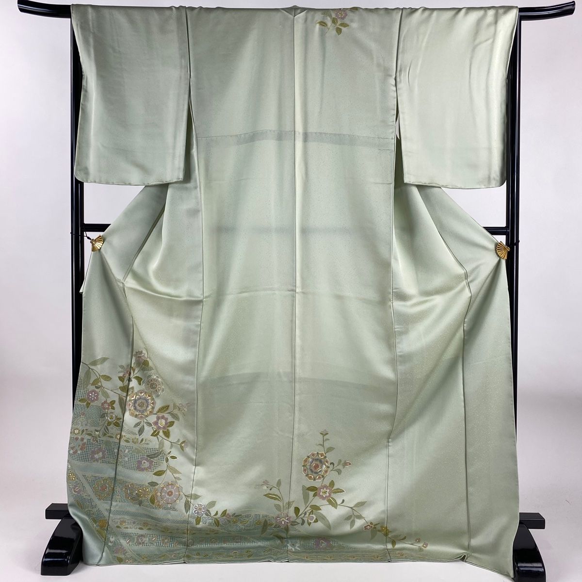 訪問着 身丈177.5 cm 裄丈66 M 袷 華文 草花 刺繍 金糸 薄緑 正絹